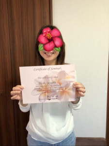 半年間を振り返ると手技以外のことも成長したのでは…と思います。何気ない生徒間の会話や先生との会話は楽しみながら情報交換にもなりました。精神的にはアロハスピリットをより意識すると魅力あるセラピストになれるのかも…とヒントをいただきました。